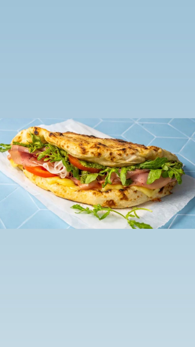 mozzarella, salade, jambon de dinde, buffalo tomate fraiche, pesto